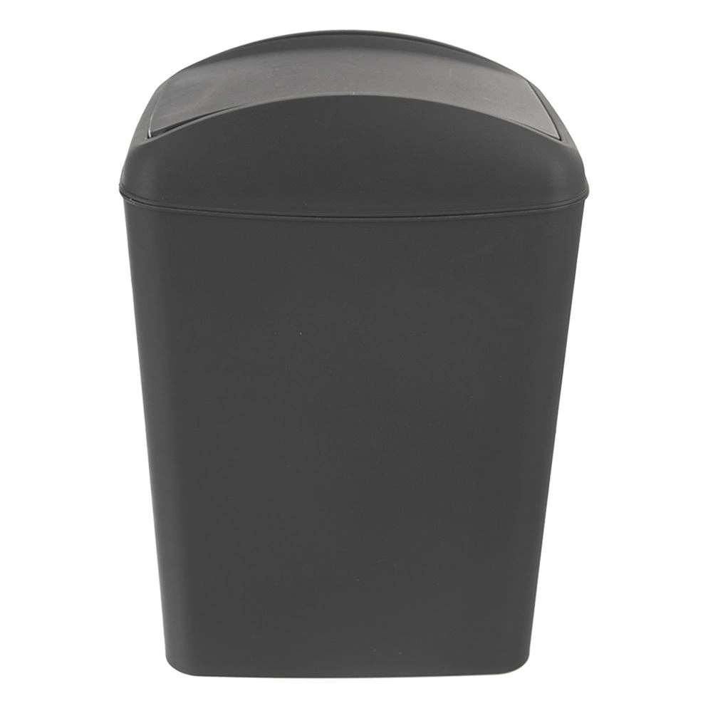 Kompaktowy kosz na śmieci o pojemności 5 l z uchylną klapą dla wygodnego i higienicznego wyrzucania odpadków. Dzięki niewielkim wymiarom sprawdzi się w łazience, kuchni i biurze. Wykonany z wytrzymałego plastiku w eleganckim ciemnoszarym kolorze, łatwy w czyszczeniu i pielęgnacji. Oszczędne wymiary, uchylna klapa przeciw zapachom oraz lekka, stabilna konstrukcja do codziennego użytku.