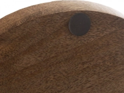 Ta elegancka patera do serwowania została wykonana z wysokiej jakości drewna mango, które jest naturalnie odporne na wilgoć i odkształcenia, słabo chłonne i szybko schnie. Centralny metalowy uchwyt w czarnym kolorze ułatwia manipulację i nadaje misie nowoczesny industrialny wygląd.