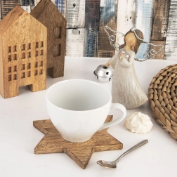Drewno mango jest naturalnie odporne na wilgoć i odkształcenia, nie pochłania zapachów i szybko schnie. Dzięki temu podkładka jest idealna do gorących i zimnych napojów, a także sprawdzi się jako mała podstawka pod świece lub dekoracyjna baza do kompozycji.