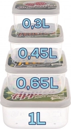 Pojemniki wykonane są z wysokiej jakości, bezpiecznego dla zdrowia tworzywa, które jest mocne, a jednocześnie lekkie. Dzięki niezawodnej pokrywce na zatrzask pomagają zachować świeżość przekąsek, sałatek i resztek z kolacji. Po użyciu można je wsunąć jeden w drugi, dzięki czemu oszczędzają miejsce w kuchennej szafce.