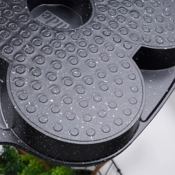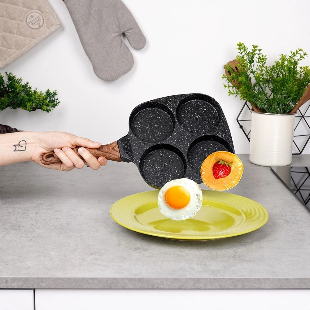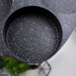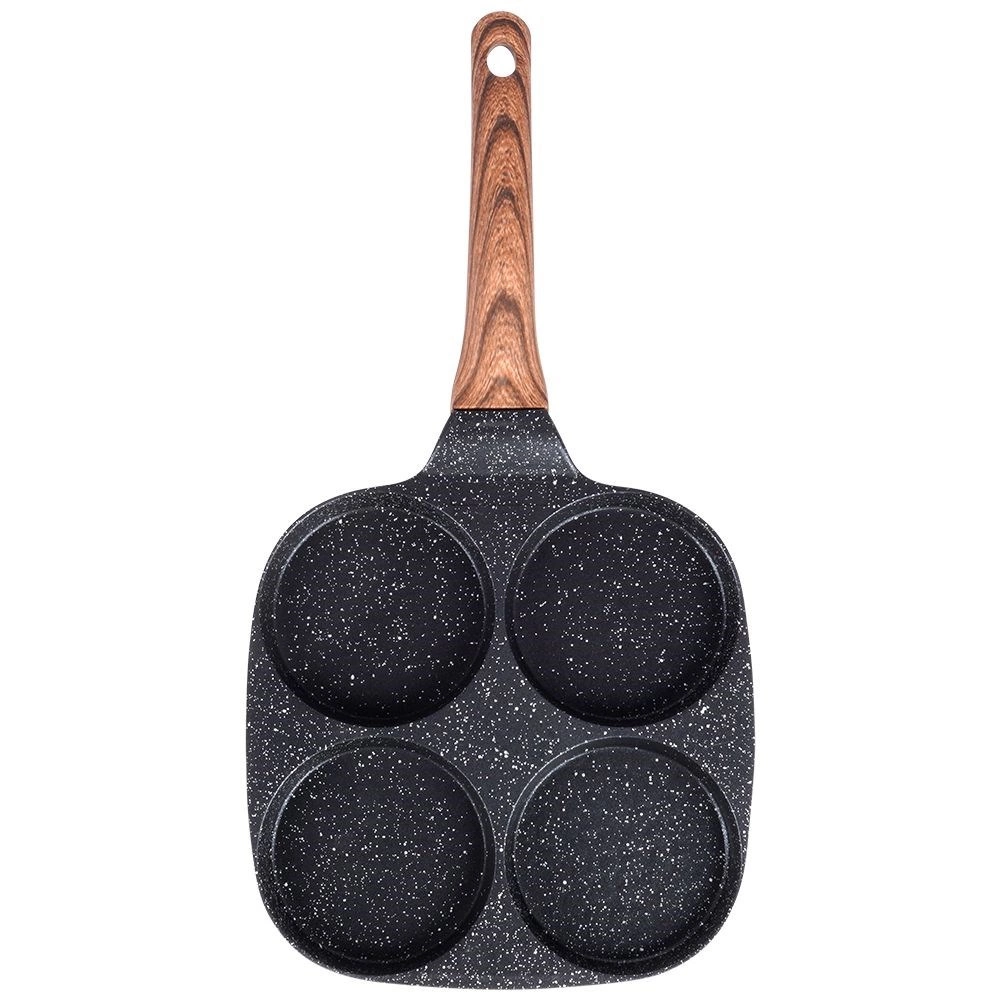 Wprowadź do kuchni codzienną wygodę: granitowa patelnia BLACK&WOOD o wymiarach 19 × 19 cm oferuje cztery oddzielne komory dla idealnie okrągłych porcji. Bez trudu przygotujesz jajka sadzone, śniadaniowe racuchy i małe naleśniki – szybko, równomiernie i z minimalną ilością tłuszczu dzięki nieprzywierającej powłoce.