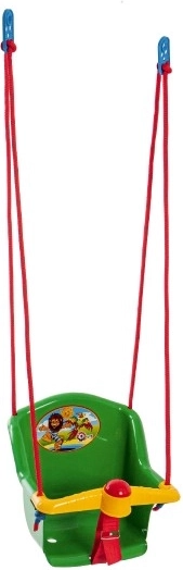 Zielona dziecięca huśtawka z wytrzymałego plastiku ucieszy każdego małego urwisa. Oferuje solidną konstrukcję, funkcję dźwiękową dla jeszcze większej zabawy oraz barierkę bezpieczeństwa dla spokojnego bujania. Dzięki mocnym linom i kompaktowym wymiarom świetnie sprawdzi się w ogrodzie i na tarasie.