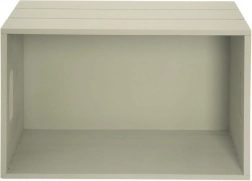 Otwarta górna część umożliwia szybki przegląd zawartości, a boczne wycięcia zapewniają komfortowe przenoszenie. Skrzynka sprawdzi się w kuchni na owoce, warzywa, przyprawy czy książki kucharskie, w łazience na kosmetyki, w gabinecie na dokumenty i artykuły papiernicze lub w przedpokoju na dodatki. Można ją wykorzystać także dekoracyjnie – świetnie prezentują się w niej zioła lub drobne rośliny doniczkowe.
