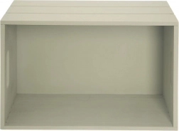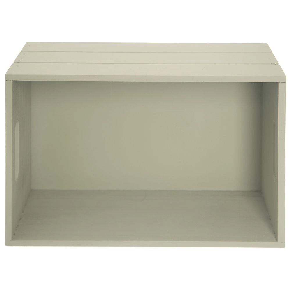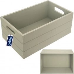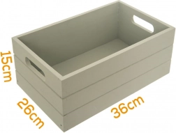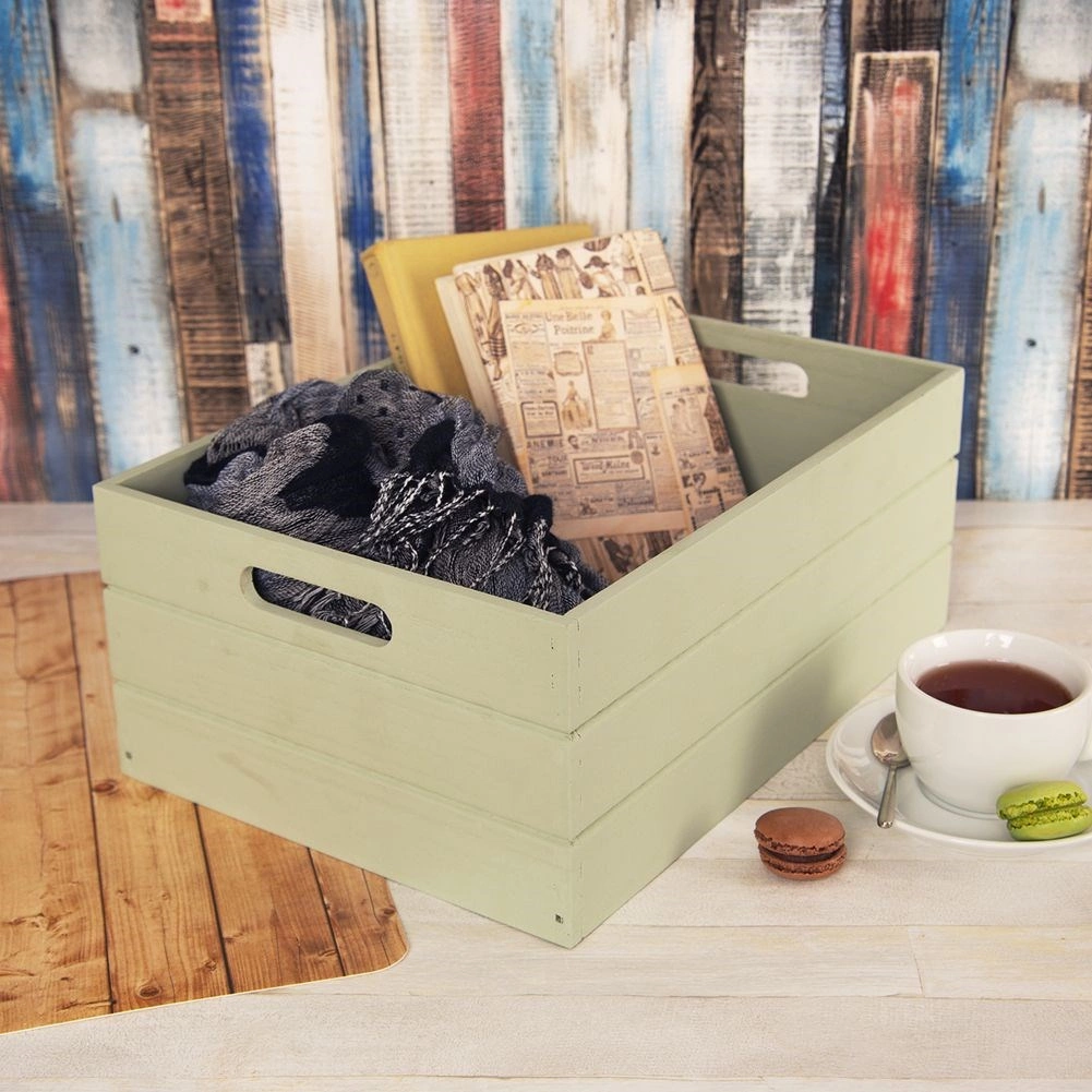 Elegancka drewniana skrzynka pomaga utrzymać porządek w domu i w biurze. Wykonana z wytrzymałego drewna i pomalowana na pastelową jasną zieleń, ożywi półkę, komodę i biurko. Dzięki bocznym otworom wygodnie się ją przenosi.