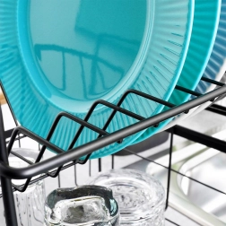 Maksymalizuj przestrzeń przy zlewie dzięki kompaktowemu i stabilnemu ociekaczowi, który pomieści wszystko, co potrzebne – od talerzy, przez szklanki, po sztućce. Dwupoziomowe ułożenie zapewnia lepszy przepływ powietrza, a więc szybsze schnięcie, podczas gdy wyjmowana tacka ociekowa utrzymuje blat bez mokrych śladów.