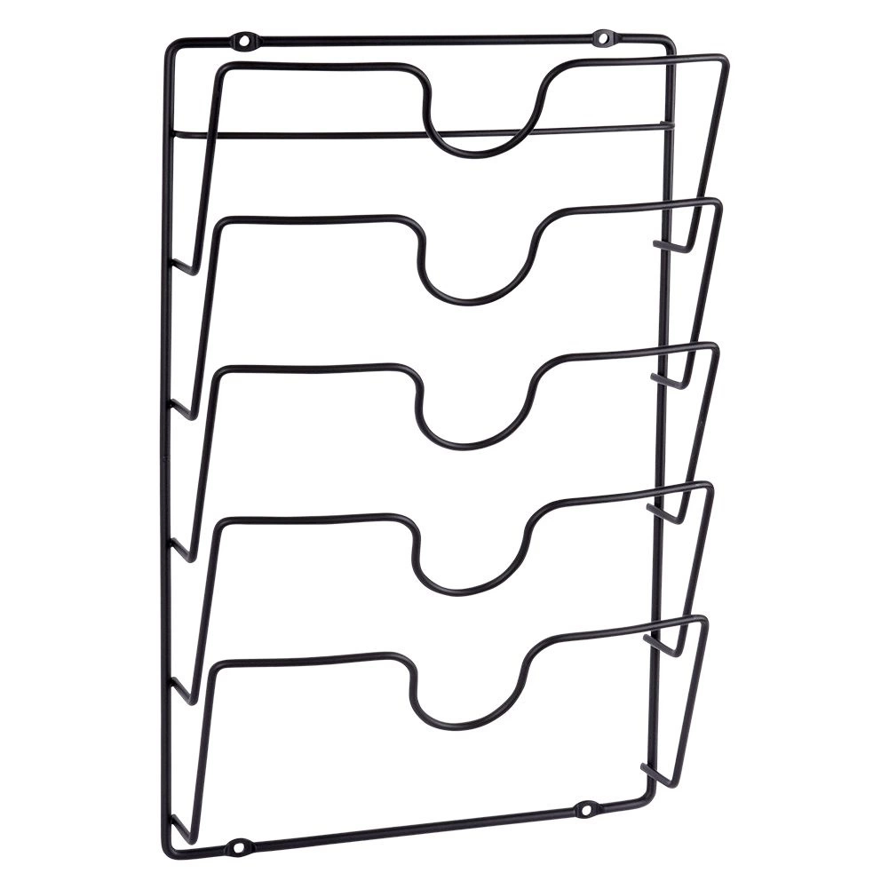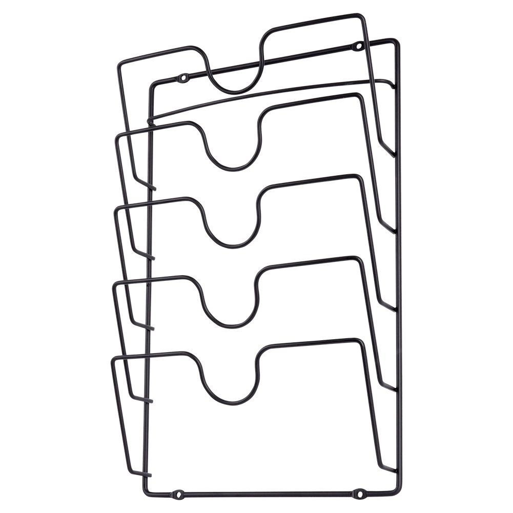 Uporządkuj kuchnię raz na zawsze. Wieszak ścienny na pokrywki Vilde zapewnia bezpieczne i przejrzyste przechowywanie pokrywek do garnków i patelni, dzięki czemu zawsze szybko je odnajdziesz podczas gotowania. Minimalistyczny loftowy design w matowej czerni pasuje zarówno do nowoczesnych, jak i klasycznych wnętrz.