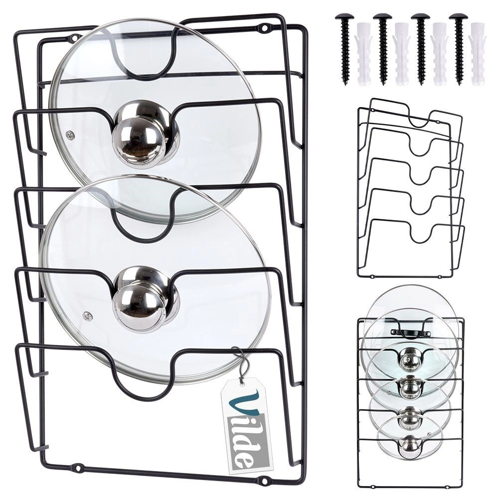 Cztery do pięciu poziomów do bezpiecznego przechowywania pokrywek o różnych rozmiarach – natychmiastowy przegląd i porządek w kuchni.