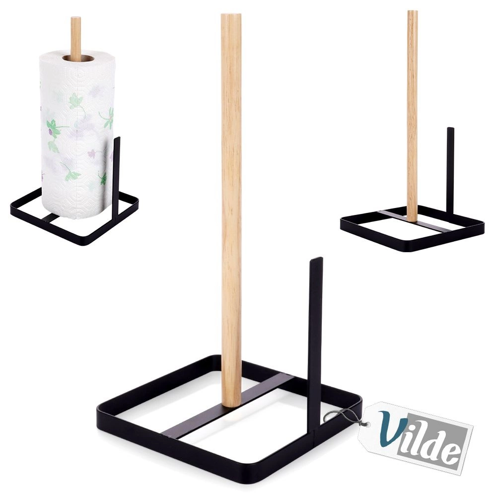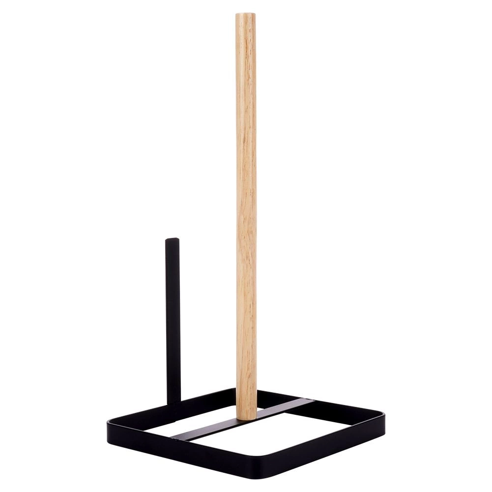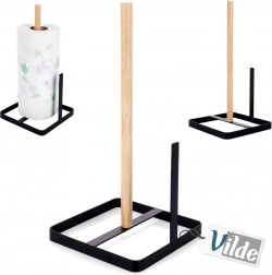 Elegancki i wytrzymały stojak na papierowe ręczniki ułatwi codzienne gotowanie i sprzątanie. Masowy drewniany słupek oraz czarna metalowa podstawa w matowym wykończeniu zapewniają solidność, stabilność i długą trwałość. Dzięki sprytnej formie odrywanie ręczników jest szybkie i wygodne, bez rozwijania całej rolki.