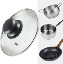 Praktyczna szklana pokrywka 14 cm to idealne uzupełnienie naczyń bez własnego wieczka. Przezroczyste żaroodporne szkło umożliwia stałą kontrolę potrawy, dzięki czemu ciepło i para nie ulatniają się niepotrzebnie. Stalowa obręcz zwiększa trwałość i żywotność, a ergonomiczny plastikowy uchwyt zapewnia bezpieczne i wygodne chwytanie.