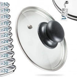 Uniwersalna szklana pokrywka o średnicy 14 cm z żaroodpornym szkłem, stalowym rantem i wygodnym uchwytem. Dzięki przezroczystemu szkłu możesz kontrolować gotowanie bez podnoszenia, zawór pary zapewnia bezpieczne odprowadzanie pary, a wyższy brzeg umożliwia ściślejsze przyleganie do naczynia. Odpowiednia do garnków, patelni i rondli o tej samej średnicy, odporna do 200 °C i nadaje się do zmywarki.