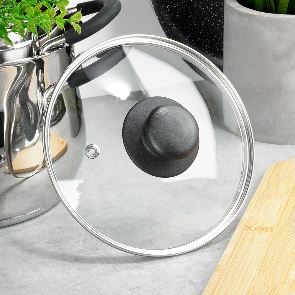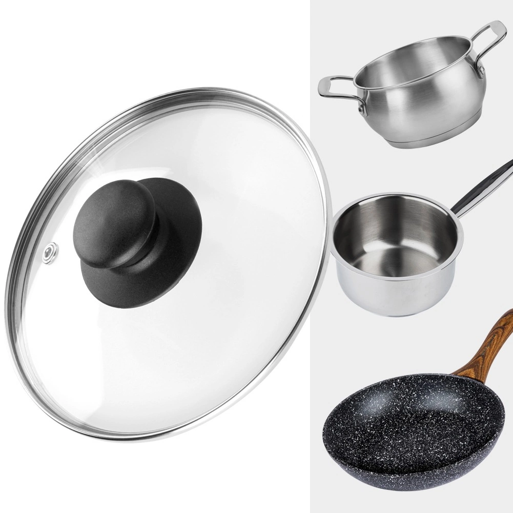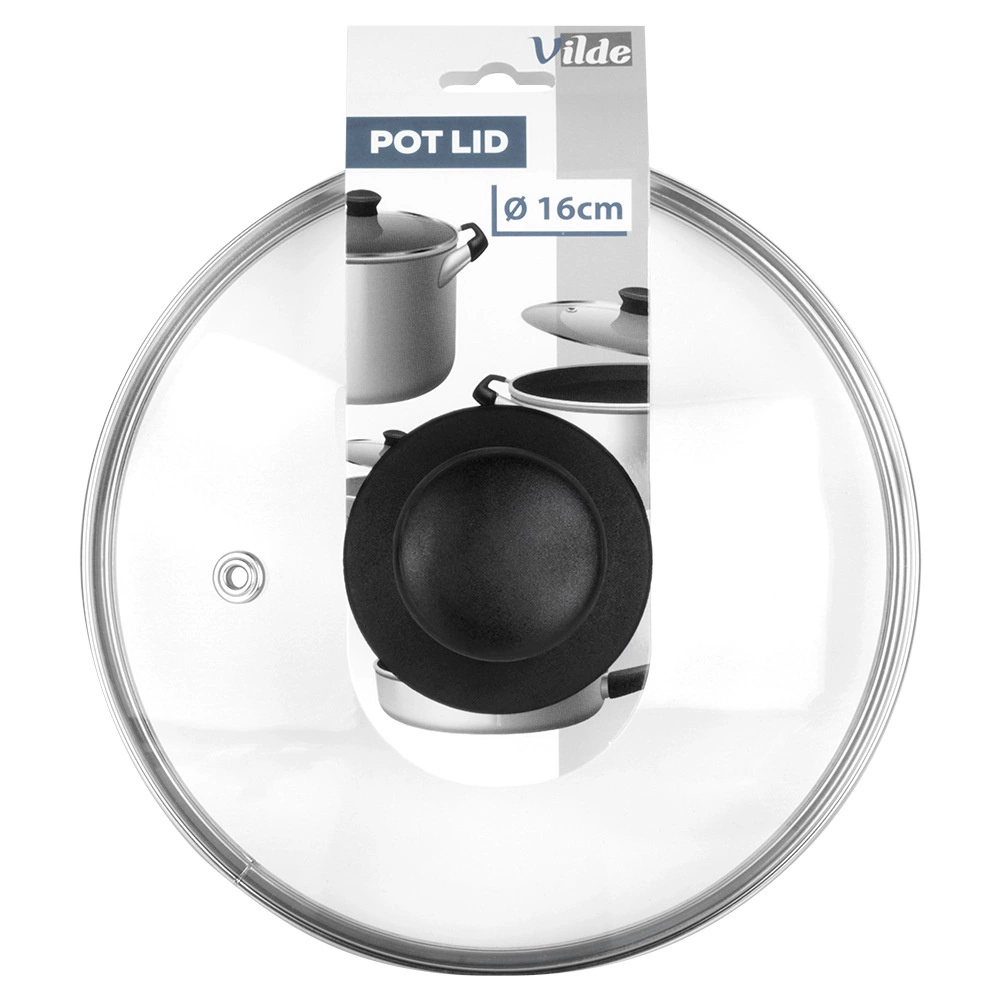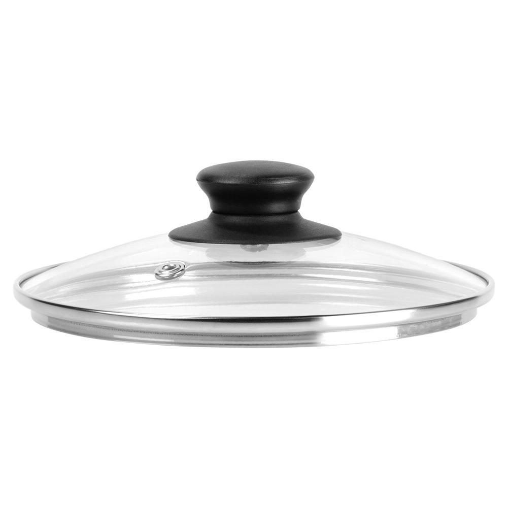 Praktyczna szklana pokrywka to idealne uzupełnienie do garnków, patelni i rondli o średnicy 16 cm. Wykonana z żaroodpornego, przezroczystego szkła z nierdzewną obręczą w eleganckim srebrnym kolorze oraz wytrzymałym czarnym uchwytem. Lekko wypukły kształt wspiera lepszą cyrkulację gorącego powietrza i utrzymanie temperatury przygotowywanych potraw.