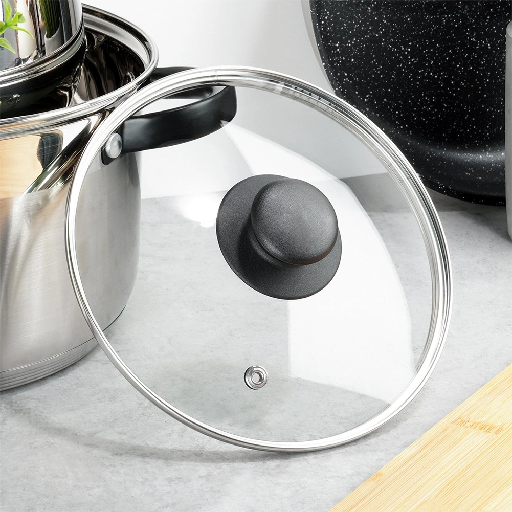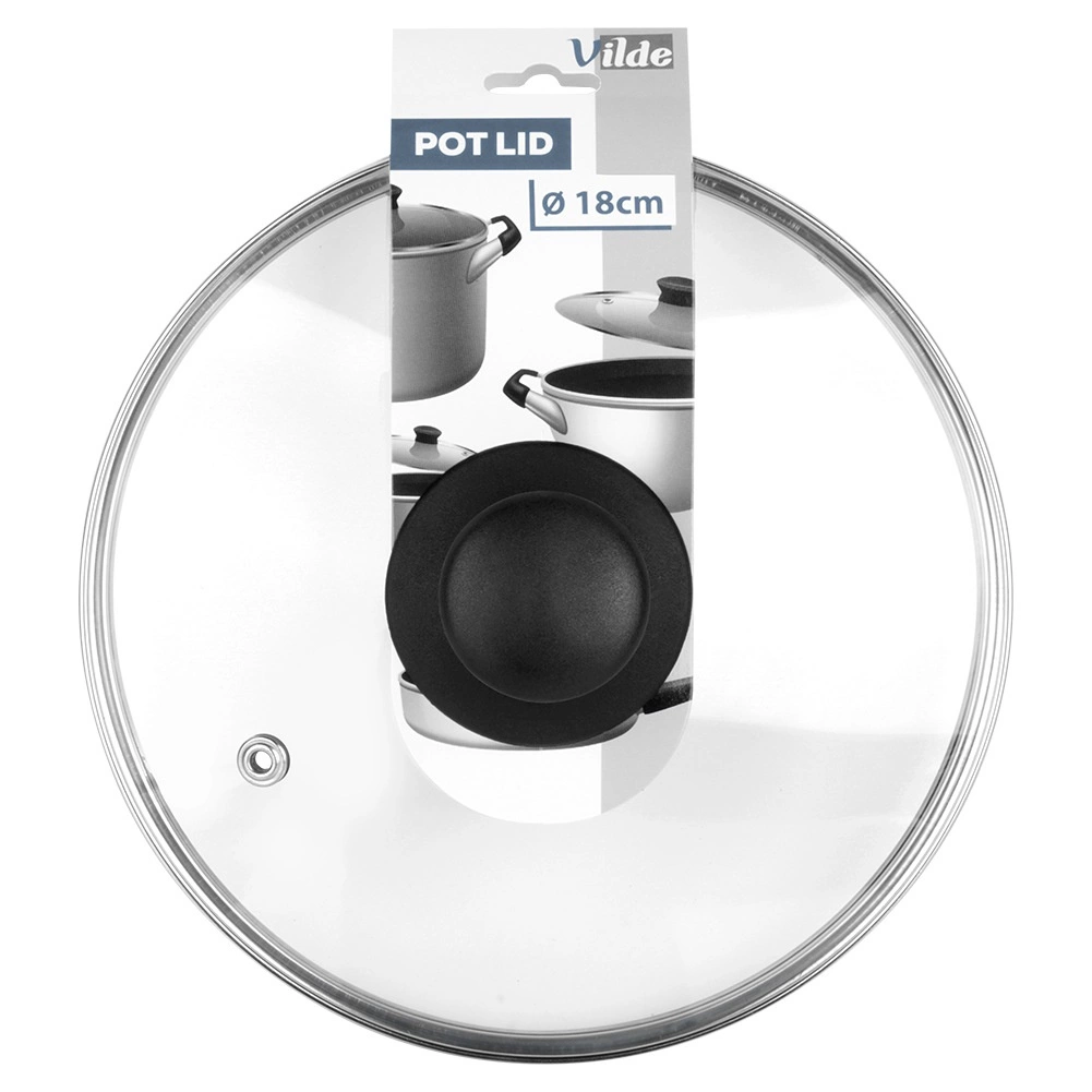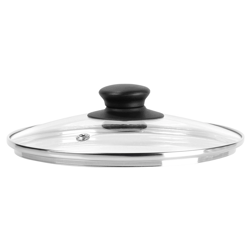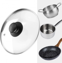 Szklana pokrywka 18 cm to praktyczny dodatek do garnków, patelni i rondli o tej samej średnicy. Wykonana z żaroodpornego, przezroczystego szkła z nierdzewną obręczą oraz wytrzymałym plastikowym gałką w czarnym kolorze. Przezroczysta konstrukcja pozwala kontrolować gotowanie bez podnoszenia pokrywki, oszczędzając energię i czas.