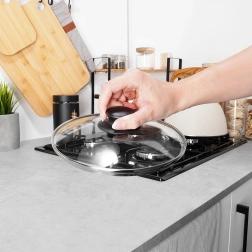 Pokrywka jest odpowiednia do zmywarki i odporna na temperaturę do 200 °C. Ergonomiczny, żaroodporny uchwyt zapewnia bezpieczny chwyt podczas przenoszenia. Świetny wybór, gdy potrzebujesz uzupełnić pokrywkę do patelni lub garnka bez oryginalnego wieka.