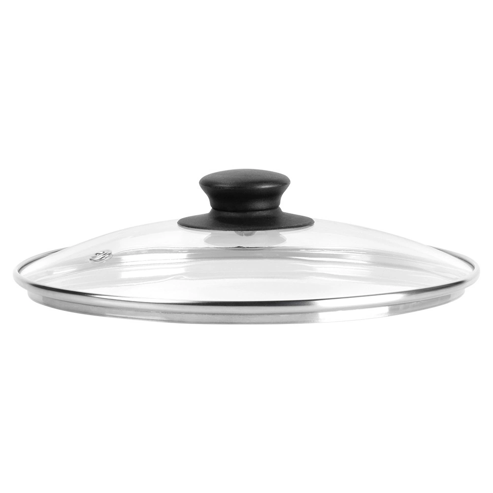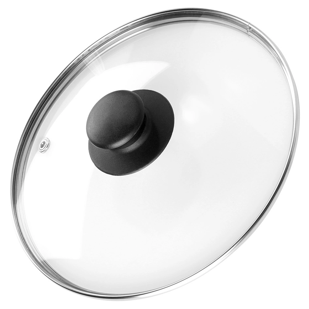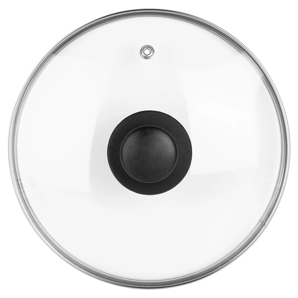 Nierdzewna obręcz zwiększa trwałość krawędzi i szczelność, a żaroodporny plastikowy gałka zapewnia pewny i wygodny chwyt.