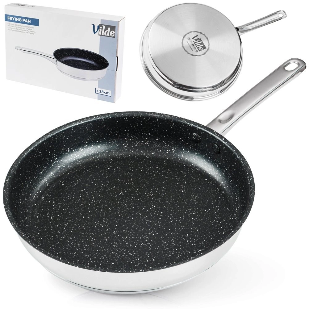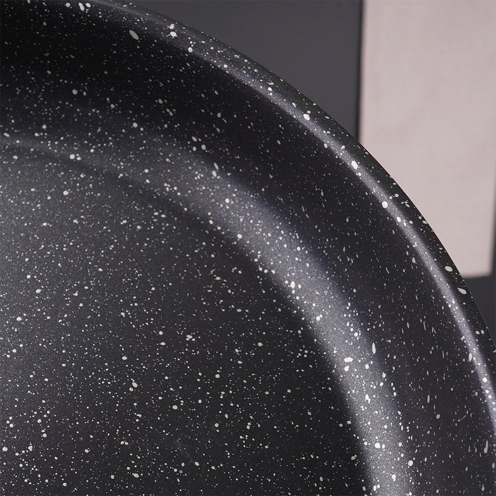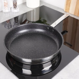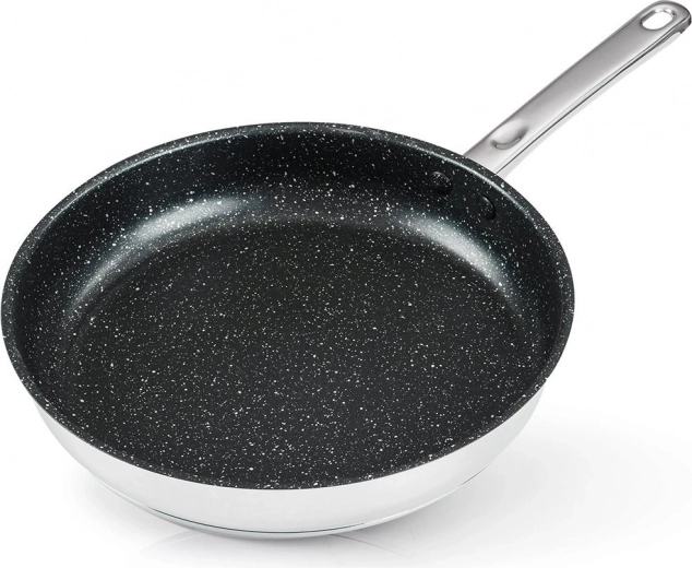 Ta stylowa patelnia z nieprzywierającą powłoką granitową pozwala gotować z minimalną ilością tłuszczu, dzięki czemu składniki zachowują naturalny smak i wartości odżywcze. Masivne stalowe korpus świetnie akumuluje i równomiernie rozprowadza ciepło, co zapewnia doskonałe rezultaty podczas smażenia, duszenia i podsmażania.