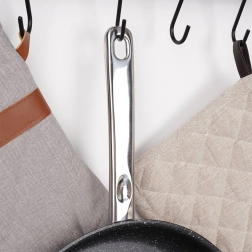 Wypolerowana stal nierdzewna jest solidna i trwała. Uchwyt z oczkiem umożliwia praktyczne zawieszenie na relingu kuchennym.