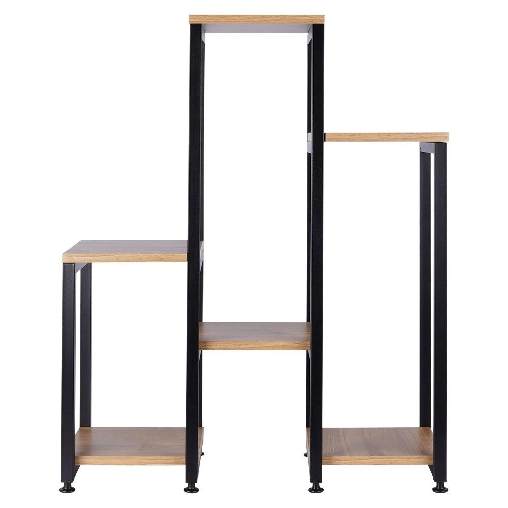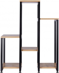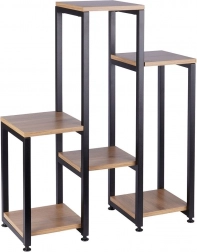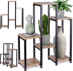Stylowy stojak na kwiaty w nowoczesnym, industrialnym stylu oferuje 6 półek na 5 poziomach wysokości, idealny na rośliny i dekoracje. Solidna metalowa konstrukcja w czarnym kolorze oraz półki z płyty MDF z dekorem drewna zapewniają stabilność i długą żywotność. Dzięki kompaktowym wymiarom 62 × 24 × 80 cm i nośności do 60 kg sprawdzi się w salonie, kuchni, holu i biurze.