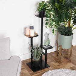 Konstrukcja z czarno lakierowanego metalu oraz półki z MDF o fakturowanej powierzchni zapewniają solidność i łatwą pielęgnację. Dzięki wysokiej stabilności możesz ustawić go w salonie, kuchni, przedpokoju czy gabinecie. Podstawa oferuje dodatkową powierzchnię na większą donicę.