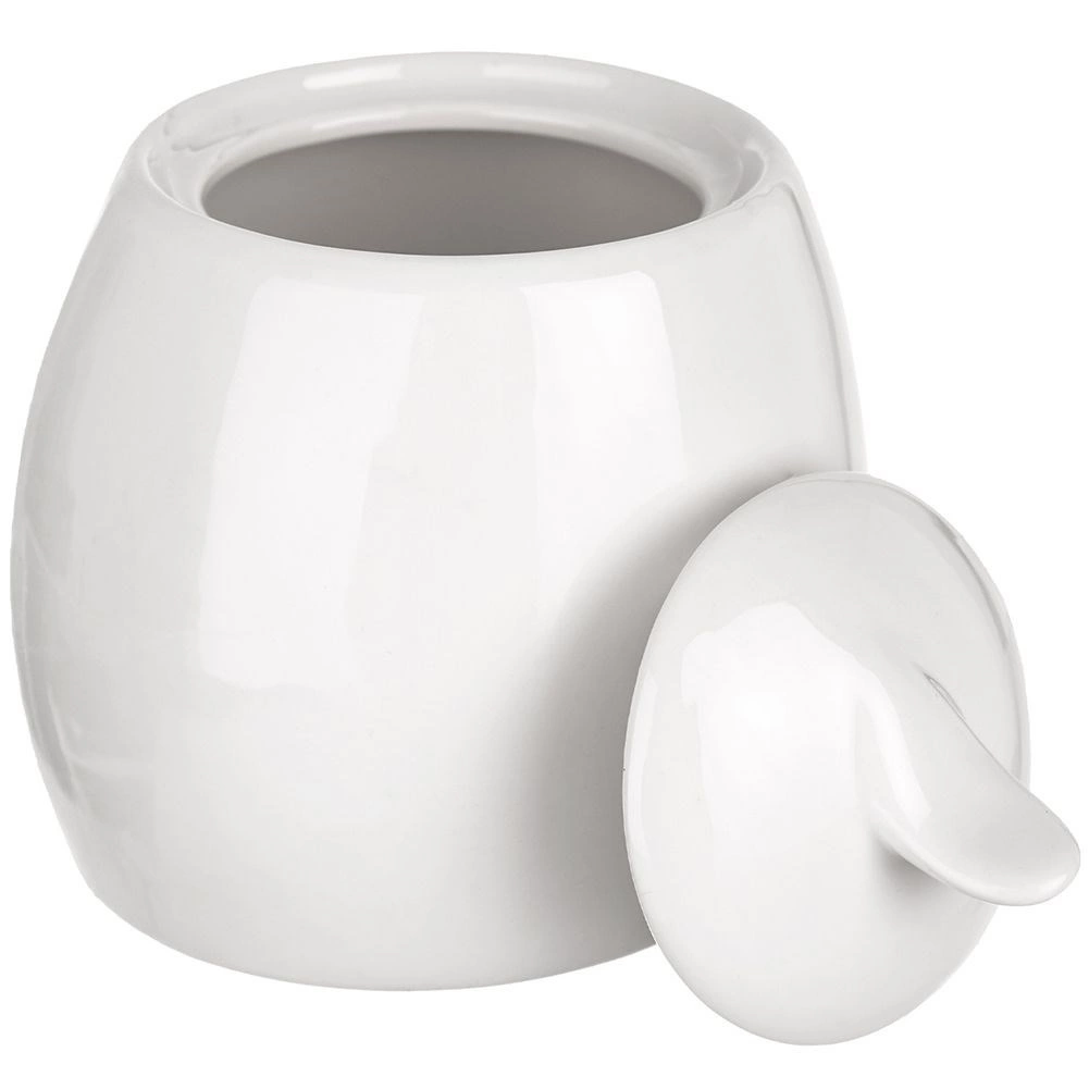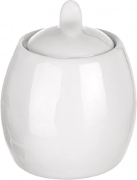 Stylowa cukiernica z wysokiej jakości białej porcelany łączy elegancki wygląd i praktyczne zastosowanie. Dzięki kompaktowym wymiarom pięknie prezentuje się na stole, a pokrywka z uchwytem dłużej utrzymuje zawartość świeżą i chronioną.