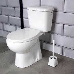 Ergonomiczny uchwyt wygodnie leży w dłoni i ułatwia dokładne czyszczenie całej toalety. Dzięki ponadczasowemu, czystemu wyglądowi zestaw łatwo dopasować do każdego stylu łazienki i WC.