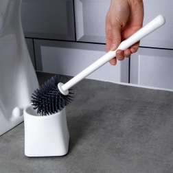 Kwadratowa podstawa utrzymuje szczotkę w pozycji pionowej, umożliwia odciekanie i zapewnia czystość oraz porządek wokół toalety.