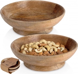 Elegancki zestaw dwóch drewnianych misek z drewna mango łączy naturalny styl i praktyczność. Idealne na sałatki, przekąski oraz ciepłe i zimne dania. Dzięki naturalnemu odcieniowi drewna doskonale pasują do każdego stołu, a odporność na wilgoć i niepochłanianie zapachów ułatwia pielęgnację. Każda miska ma średnicę 16 cm, wysokość 5 cm i pojemność 400 ml.