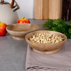 Każda miska wykonana jest z wytrzymałego drewna mango, które szybko schnie, nie pochłania zapachów i ma unikalne usłojenie.
