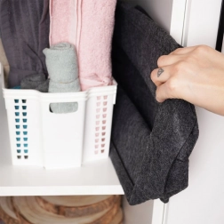 Nowoczesny, czysty wygląd w czarnym kolorze pasuje do salonu, sypialni, pokoju dziecięcego i łazienki. Składane wykonanie pozwala w kilka chwil złożyć kosz na płasko i zaoszczędzić miejsce, gdy nie jest potrzebny.