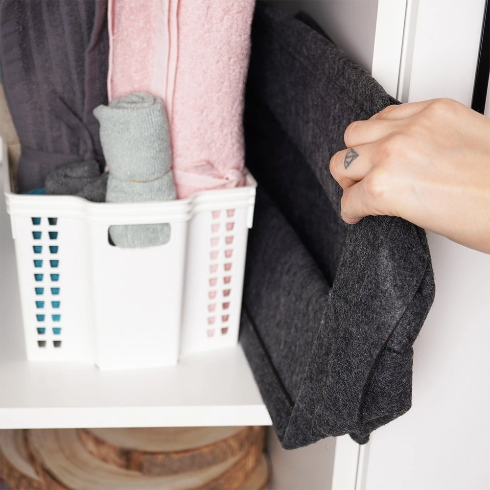 Zintegrowane boczne uchwyty ułatwiają przenoszenie i szybki dostęp do przechowywanych rzeczy.