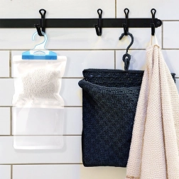 Zintegrowany haczyk umożliwia łatwe zawieszenie na drążku, haczyku lub wieszaku – idealne do szaf i mniejszych przestrzeni.