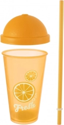 Stylowy kubek o pojemności 450 ml z kopułkową pokrywką i wielorazową słomką jest idealny do codziennego picia. Wykonany z wytrzymałego plastiku w pomarańczowym kolorze z efektownym cytrusowym wzorem. Dzięki pokrywce napój jest chroniony, a słomka została zaprojektowana tak, aby nie wypadła. Doskonały do wody, lemoniady, koktajli czy soków – w domu i w ogrodzie. Lekki, nietłukący i praktyczny na pikniki i spotkania na świeżym powietrzu.