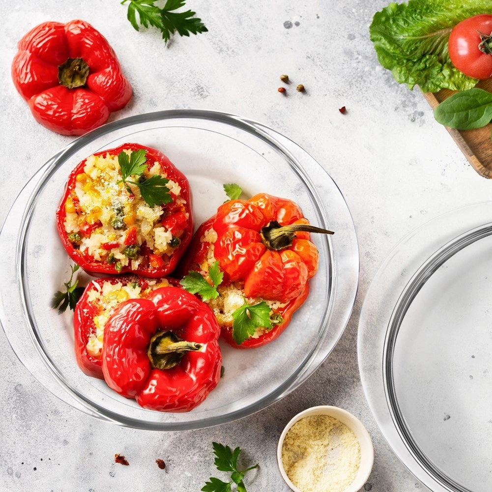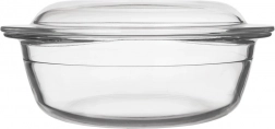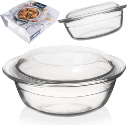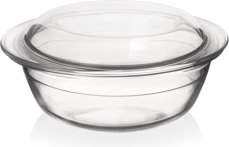 Uniwersalne szklane naczynie żaroodporne z pokrywą o pojemności 1,5 l do pieczenia, zapiekania i serwowania. Wykonane z wytrzymałego szkła borokrzemowego, odpowiednie do piekarnika, mikrofalówki, zmywarki, lodówki i zamrażarki. Dwie misy można używać oddzielnie lub razem jako misa + pokrywa, aby zachować soczystość potraw.