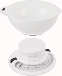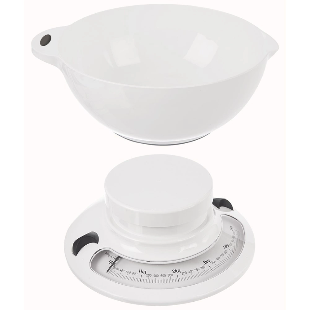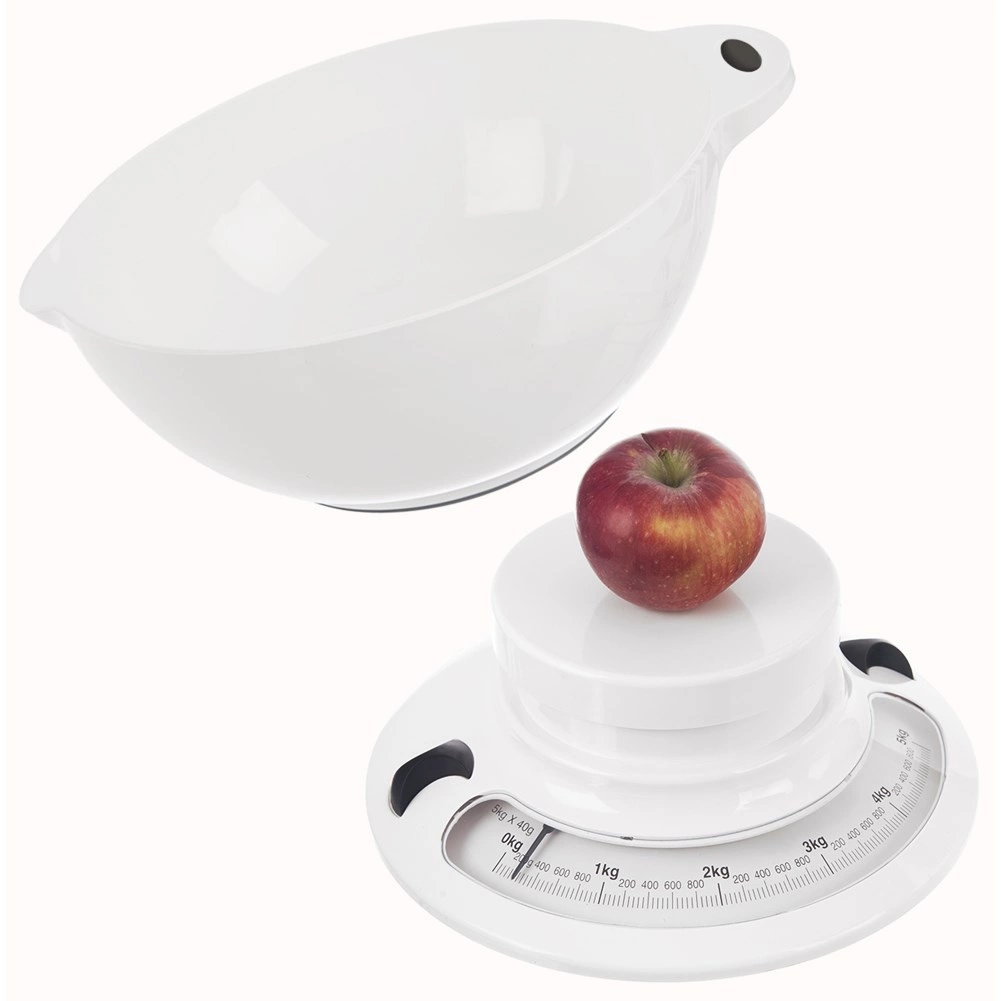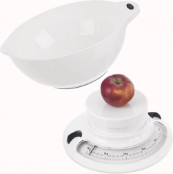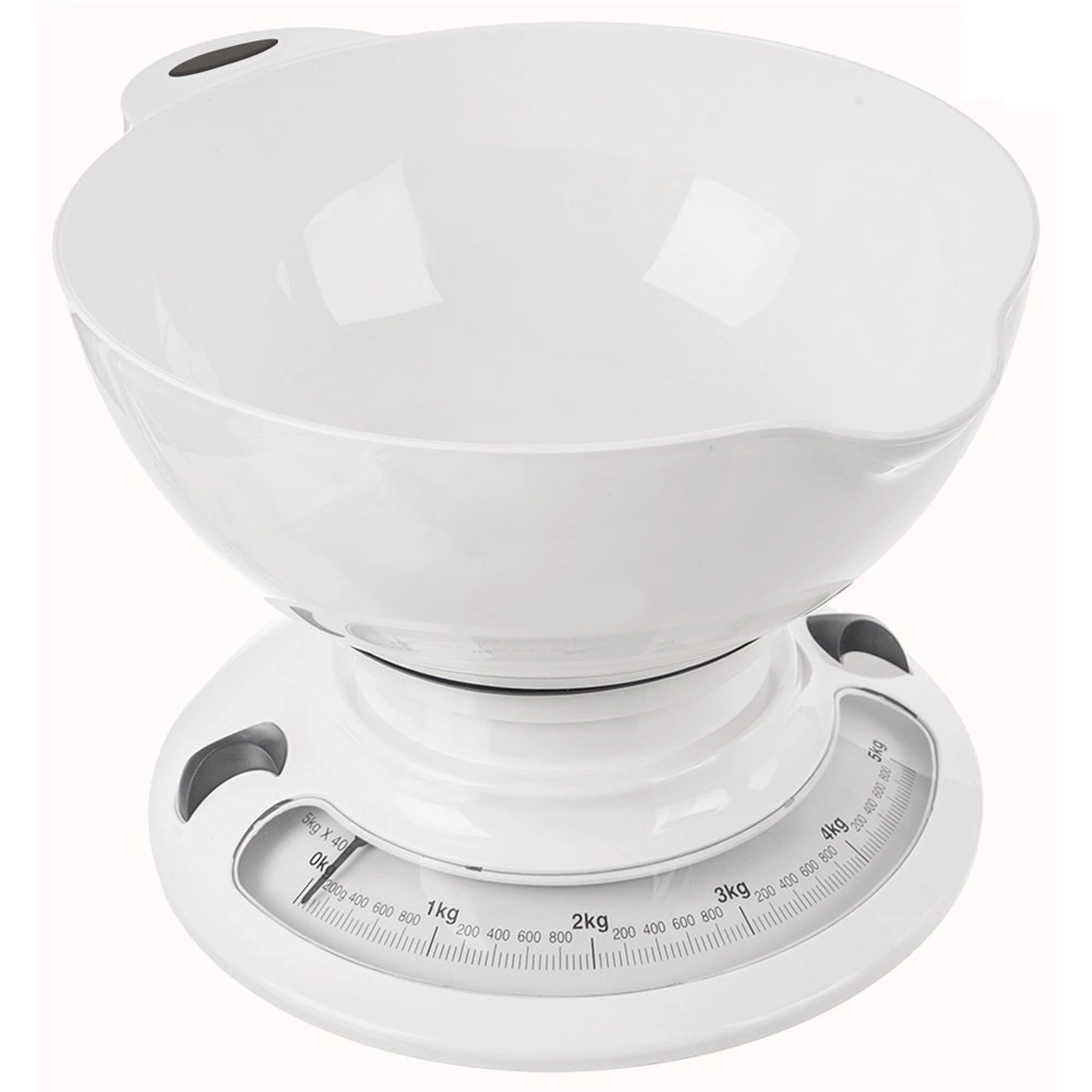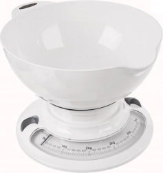 Praktyczna mechaniczna waga kuchenna z odpinaną miską i udźwigiem 5 kg do precyzyjnego ważenia składników. Oferuje czytelny analogowy odczyt w g/kg oraz lbs/oz, zerowanie/tarę, stabilną podstawę z antypoślizgiem oraz miskę o pojemności 2,6 l z praktycznym dzióbkiem do przelewania. Bez potrzeby baterii – niezawodny i ekologiczny pomocnik do każdej kuchni.