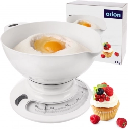 Ta mechaniczna waga ORION łączy klasyczny design z wysoką funkcjonalnością. Odpinana plastikowa misa w kolorze białym ma pojemność 2,6 l i ułatwia ważenie oraz przelewanie dzięki praktycznemu dzióbkowi. Przejrzysty cyferblat ze skalą do 5 kg pokazuje wartości w gramach/kilogramach oraz funtach/uncjach, dzięki czemu nadaje się do polskich i zagranicznych przepisów.