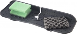 Rowkowana i kropkowana struktura stabilnie utrzymuje gąbki i szczotki, a profilowane kanaliki przyspieszają odprowadzanie wody.