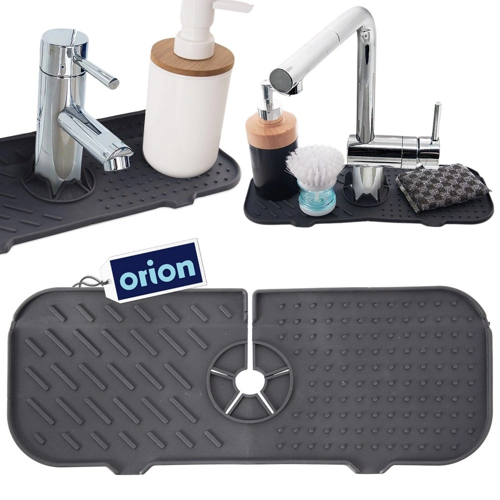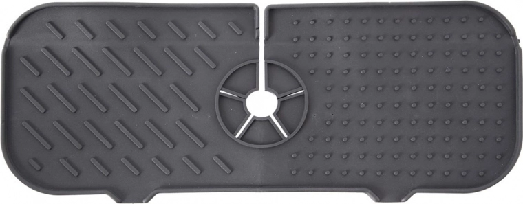 Praktyczna silikonowa mata do zlewu o wymiarach 36 × 14 cm utrzymuje okolice baterii i blat w suchości. Dzięki środkowemu wycięciu idealnie dopasowuje się do większości baterii, służy jako ociekacz dla gąbek i środków do naczyń oraz chroni powierzchnię przed wilgocią i osadem z kamienia. Wykonana z wytrzymałego silikonu, łatwa w czyszczeniu i odpowiednia do zmywarki. Powierzchnia antypoślizgowa, szybkie odprowadzanie wody i długa żywotność.