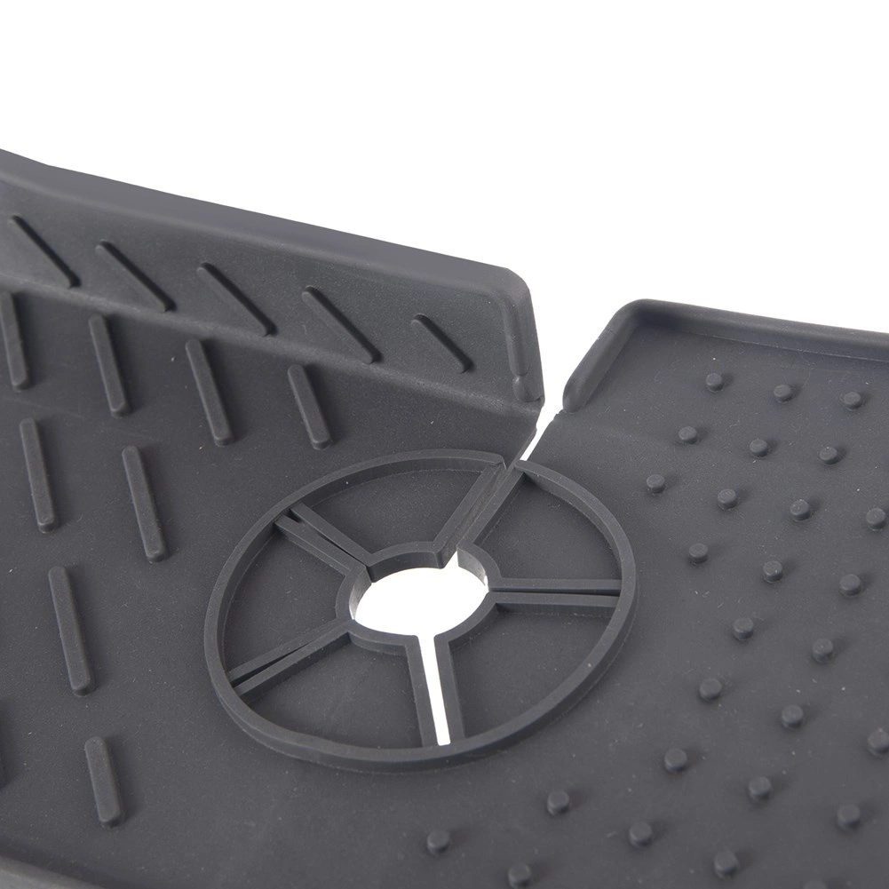 Wysokiej jakości, elastyczny silikon w kolorze grafitowym zapewnia stabilność dzięki antypoślizgowej strukturze z wypustkami oraz łatwe czyszczenie – matę można myć także w zmywarce. Dwie profilowane krawędzie odpływowe skutecznie odprowadzają nadmiar wody z powrotem do zlewu lub umywalki.