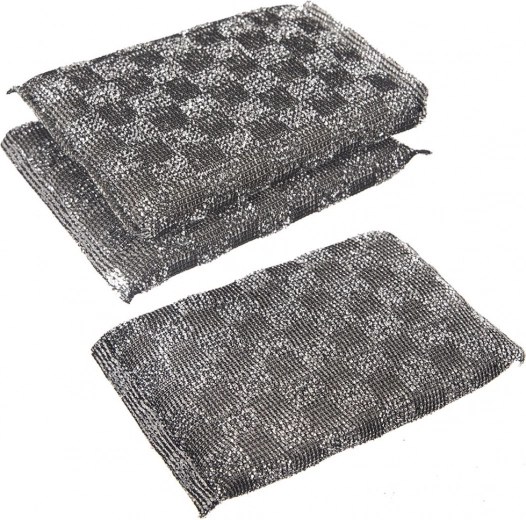 Zestaw 3 gąbek typu druciak jest idealny do kuchennych naczyń, patelni, garnków oraz blatów. Wewnętrzna pianka gwarantuje doskonałą chłonność, natomiast wytrzymała zewnętrzna warstwa z poliestru radzi sobie z tłuszczem i przypalenizną bez zbędnego rysowania.