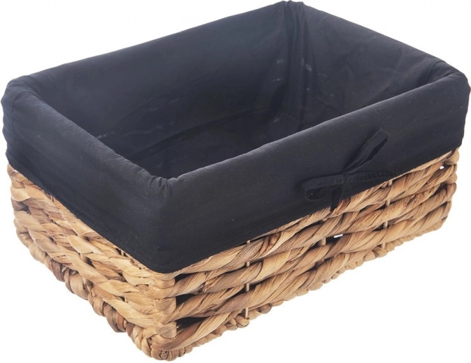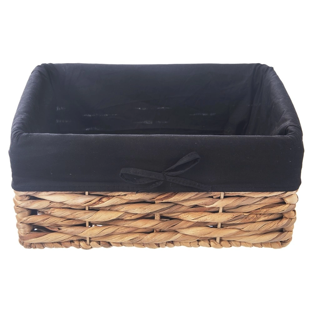 Elegancki koszyk do przechowywania z naturalnego materiału stanie się praktycznym pomocnikiem w salonie, łazience, sypialni i garderobie. Dzięki solidnemu ręcznemu wyplataniu i metalowej konstrukcji pomieści wszystko od kosmetyków i akcesoriów po bieliznę i drobiazgi. Materiałowy wkład w czarnym kolorze z kokardką chroni zawartość i nadaje koszykowi nowoczesny wygląd.