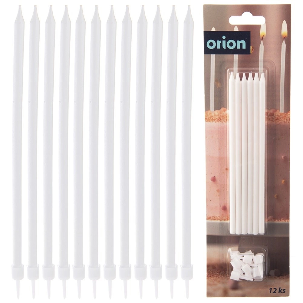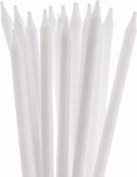 Praktyczny zestaw 12 sztuk sprawdzi się na mniejsze i większe przyjęcia. Dłuższa forma gwarantuje, że świeczki będą dobrze widoczne także na wyższych lub bardziej okazałych tortach, a ścięta końcówka ułatwia ich zapalanie.