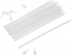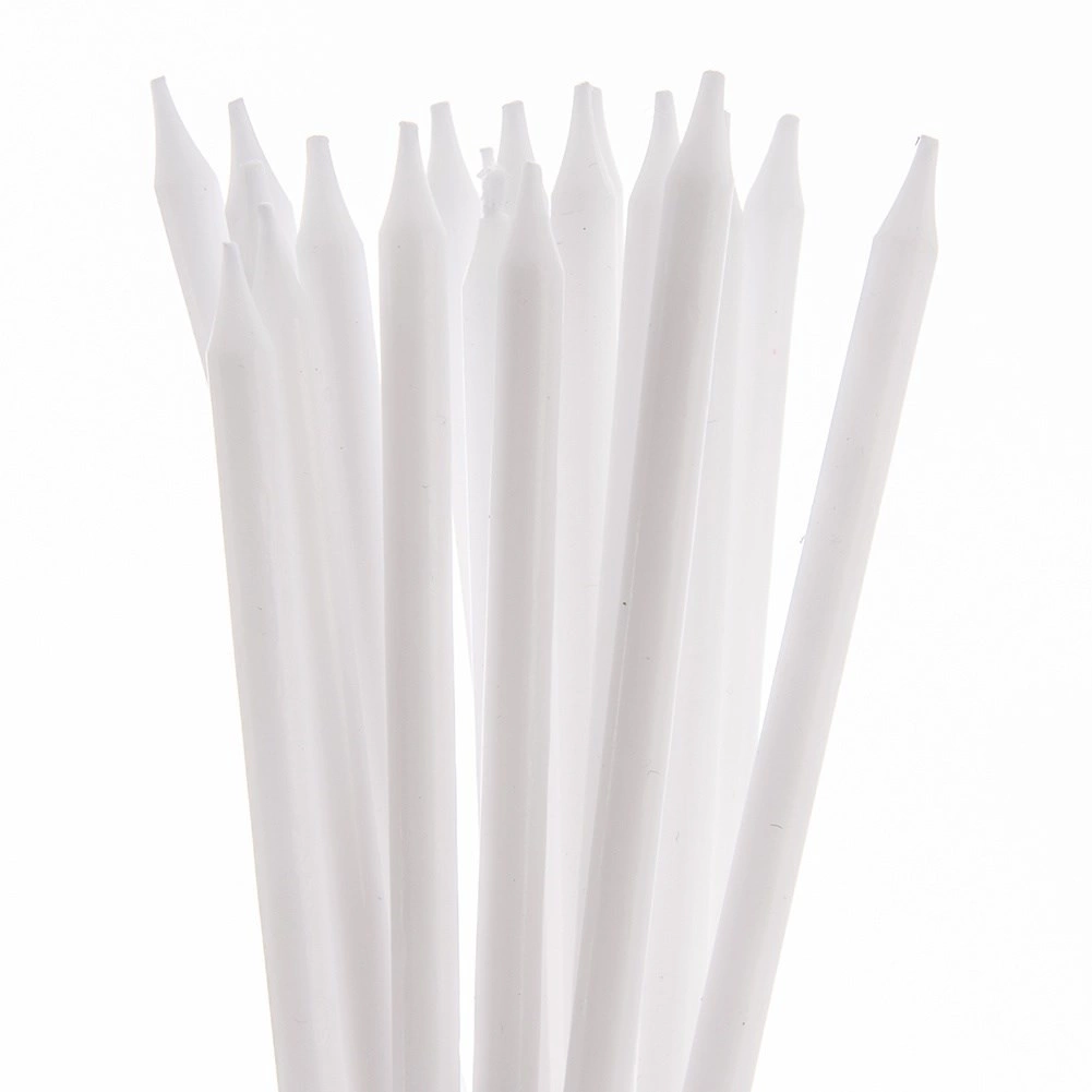 Eleganckie białe świeczki tortowe o wysokości 14,5 cm zapewniają wyrazisty efekt na każdej uroczystości. Dzięki smukłemu kształtowi i neutralnemu kolorowi świetnie komponują się z dowolną dekoracją i nie zasłaniają zdobień tortu. W zestawie znajdują się plastikowe uchwyty do bezpiecznego i stabilnego mocowania w korpusie tortu.