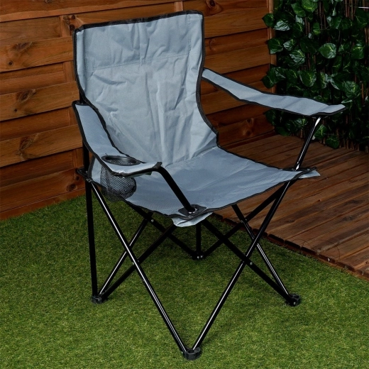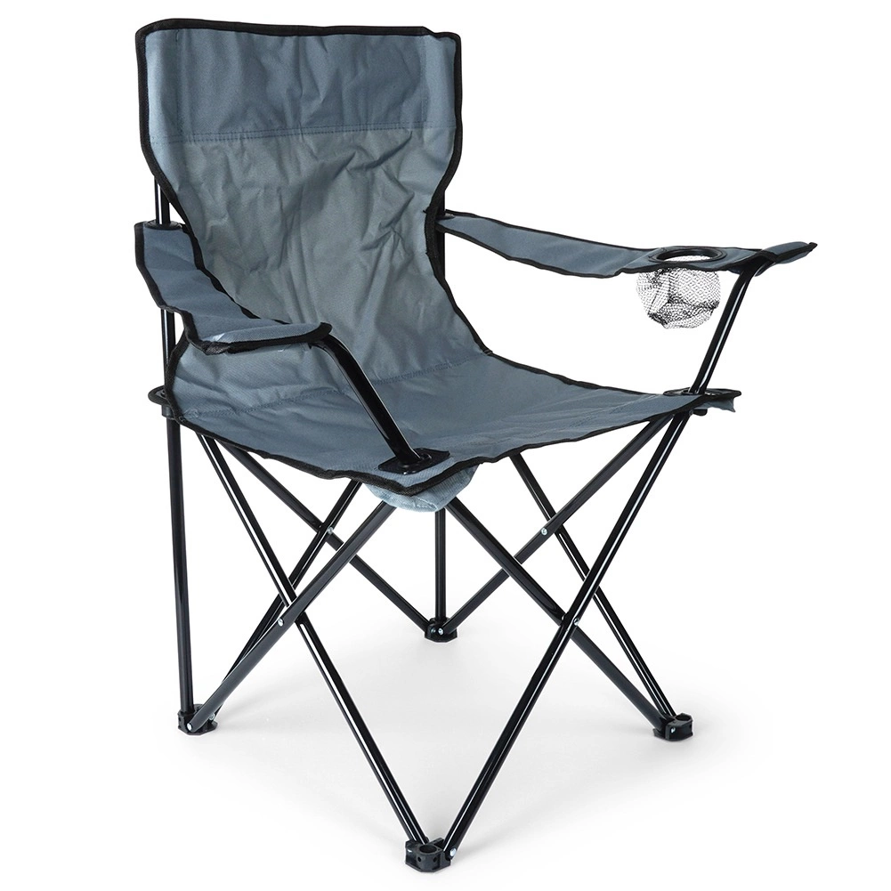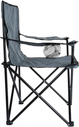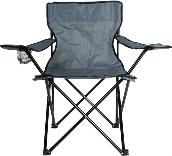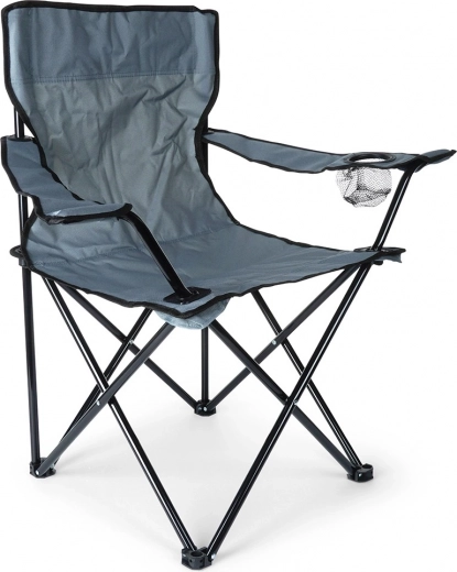 Lekkie i praktyczne składane krzesło do biwakowania, na plażę i na ryby. Oferuje solidną metalową konstrukcję, trwałą poliestrową tapicerkę w szarym kolorze, podłokietniki oraz zintegrowany uchwyt na napoje. Łatwo się rozkłada i składa, a dzięki pokrowcowi transportowemu z paskiem zabierzesz je wszędzie. Maksymalne obciążenie do 110 kg.