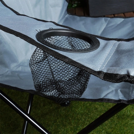 Podłokietniki z siatkowym uchwytem na napoje zapewniają komfortowe siedzenie nad wodą i przy ognisku. Idealne na kubki i puszki.