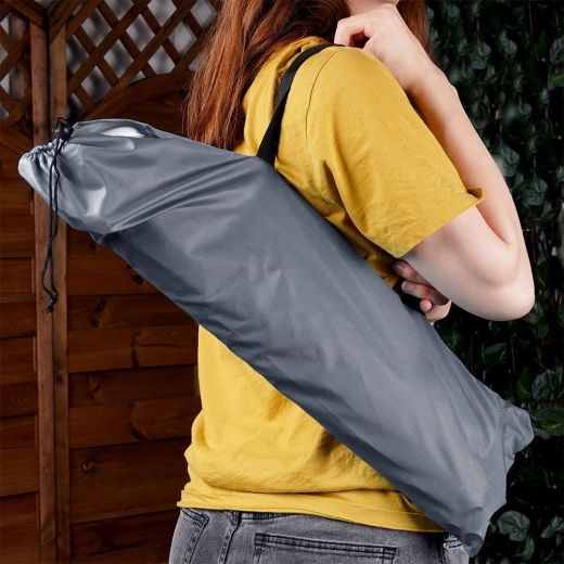 Krzesło błyskawicznie składa się do dołączonego pokrowca z paskiem na ramię. Łatwe w transporcie i przechowywaniu, nawet w małym bagażniku.