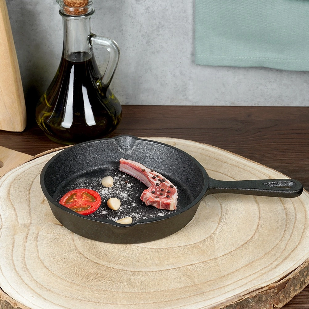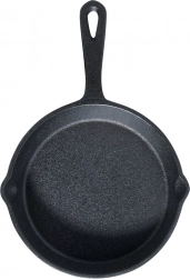 Kompaktowa żeliwna patelnia o średnicy 15 cm do codziennego gotowania w domu, na grillu i w piekarniku. Zapewnia równomierne rozprowadzanie ciepła, długie utrzymywanie temperatury oraz odporność na wysokie temperatury. Dwie praktyczne wylewki ułatwiają serwowanie, a otwór w uchwycie pozwala na zawieszenie. Odpowiednia na gaz, elektryczność, ceramikę, halogen i indukcję.