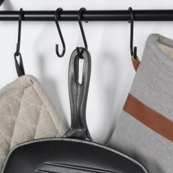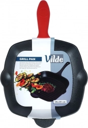 W zestawie znajduje się czerwona silikonowa nakładka dla bezpiecznego chwytu długiego uchwytu. Pomocnicze uszko naprzeciw uchwytu ułatwia przenoszenie. Patelnia jest uniwersalna – odpowiednia na gaz, prąd, płytę szklano-ceramiczną, halogen i indukcję, a także na grill i do piekarnika. Dzięki otworowi w uchwycie łatwo ją zawiesisz.