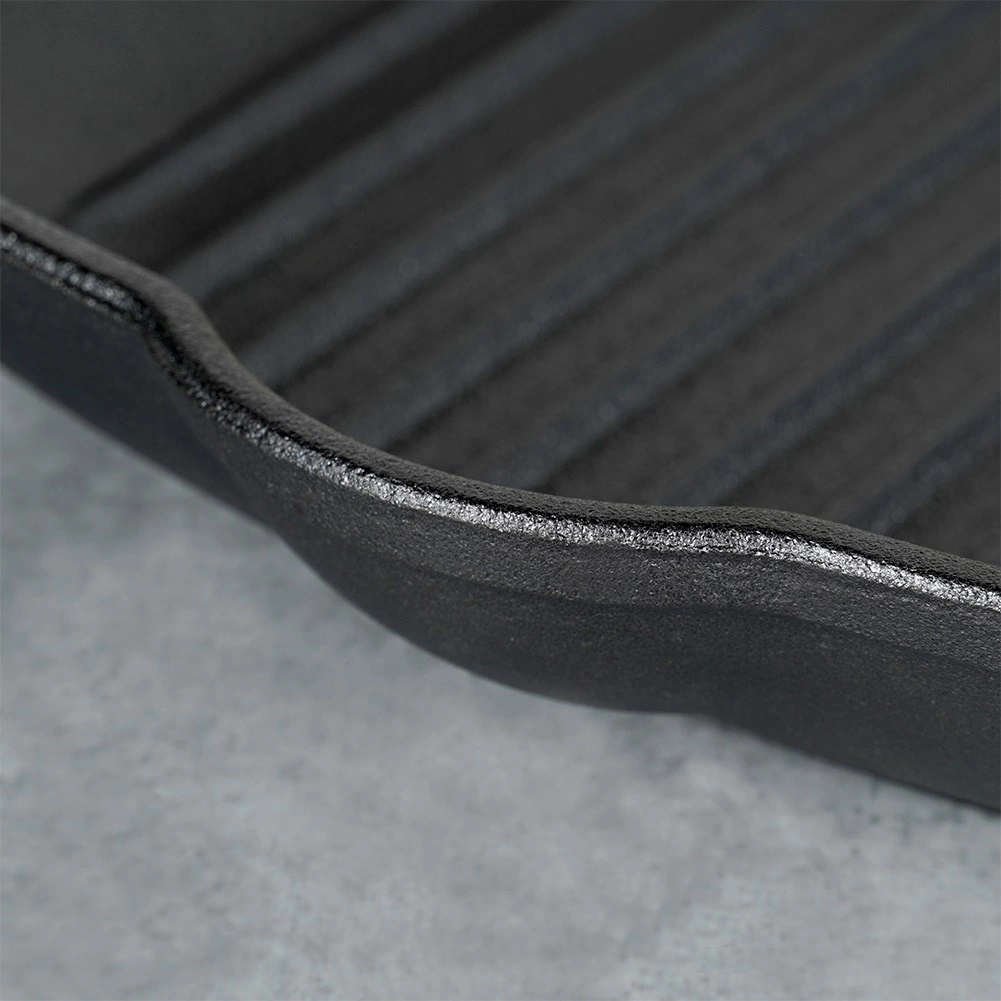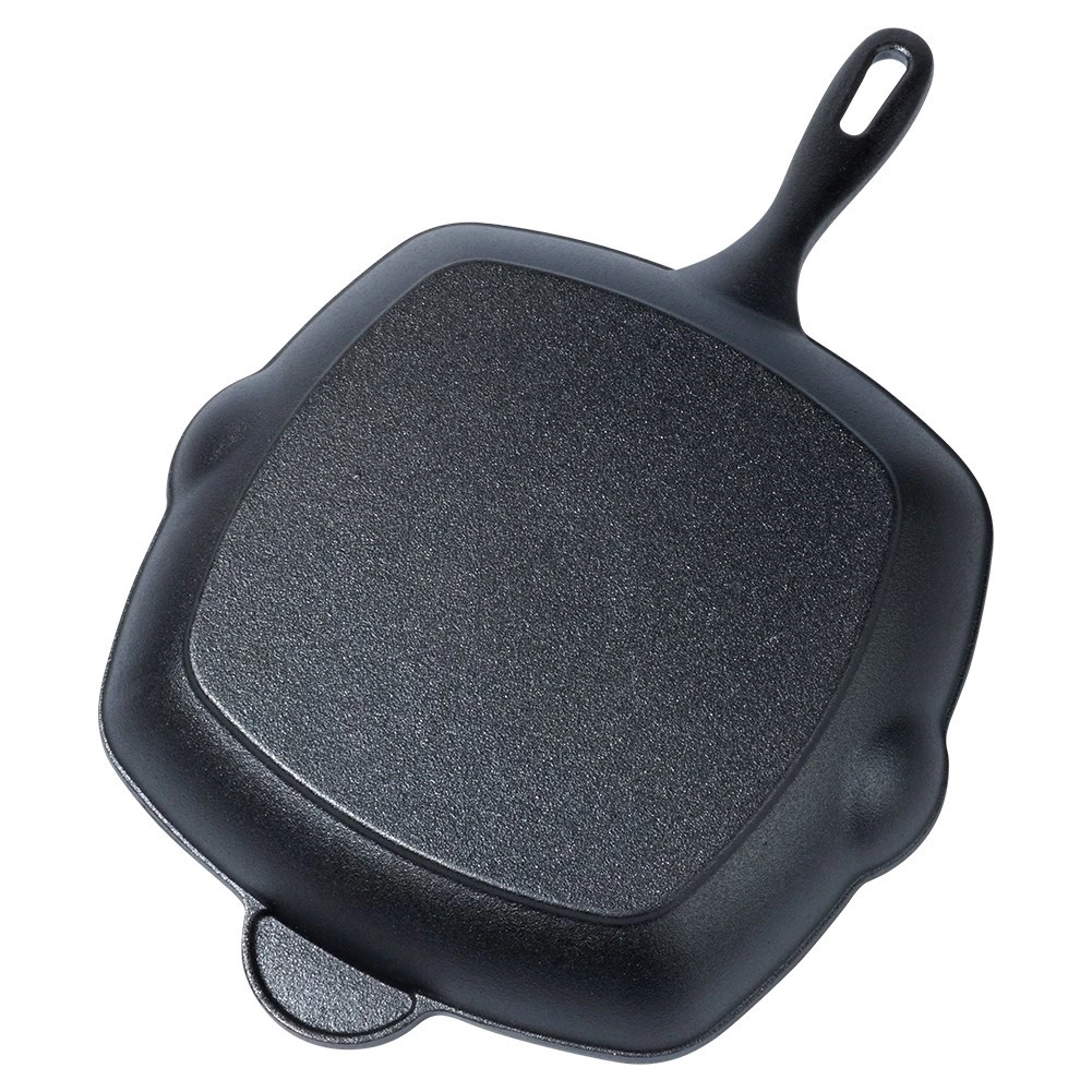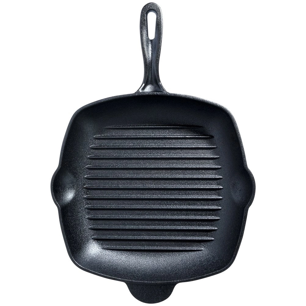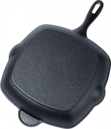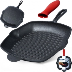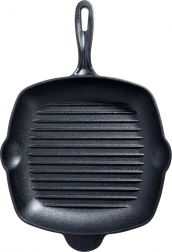 Żeliwna patelnia z wyraźnym żebrowaniem pozwala grillować w domu jak na zewnętrznym grillu. Żeliwo świetnie przewodzi i utrzymuje ciepło, dzięki czemu uzyskasz intensywne przypiekanie, soczysty środek i piękne paski grillowe. Praktyczne dziobki po obu stronach ułatwiają zlewanie nadmiaru tłuszczu oraz serwowanie sosów.