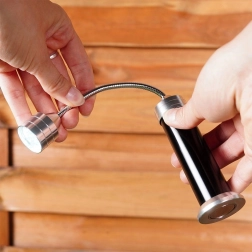 Grilluj kiedy chcesz – także po zachodzie słońca. Elastyczne ramię typu gęsia szyja z pełną orientacją 360° pozwala skierować światło dokładnie tam, gdzie go potrzebujesz. Silna magnetyczna podstawa zapewnia stabilne mocowanie do grilla lub innej metalowej powierzchni, dzięki czemu obie ręce pozostają wolne do przygotowywania potraw.