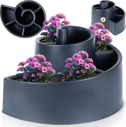 Stylowa kaskadowa donica w kształcie spirali z sześcioma sekcjami umożliwia oszczędną uprawę kwiatów i ziół nawet na małej przestrzeni. Trwałe wykonanie z tworzywa z recyklingu nadaje się do całorocznego użytku na zewnątrz, łatwo się czyści i pięknie podkreśla nasadzenia na balkonie, tarasie oraz w ogrodzie.