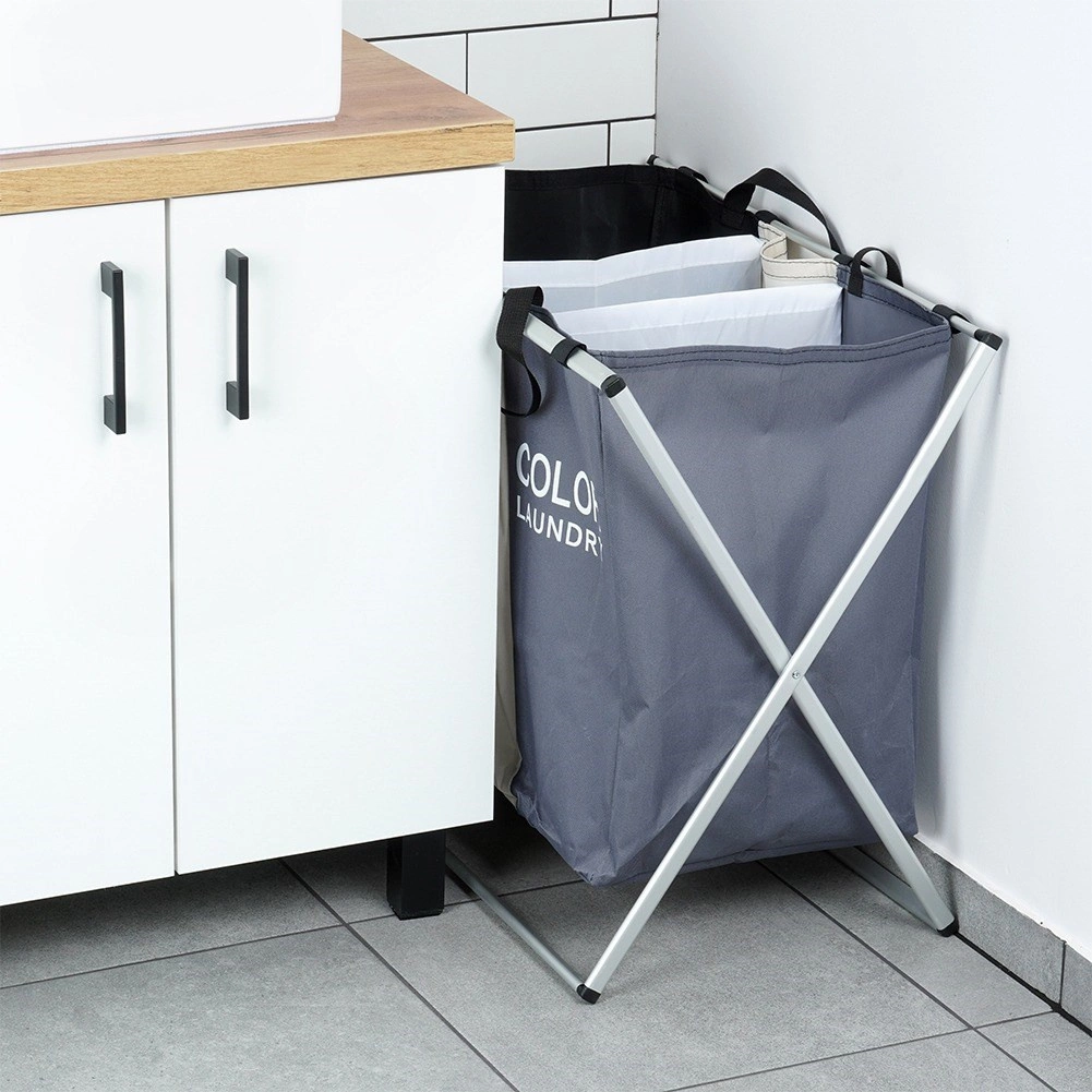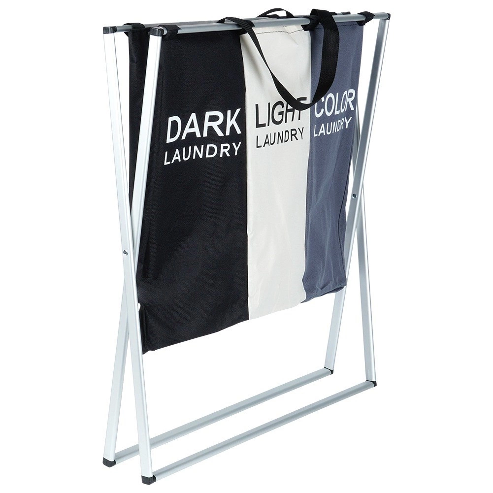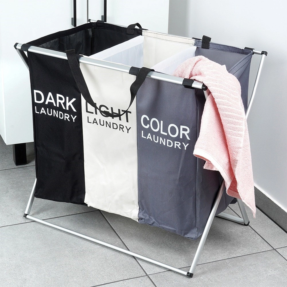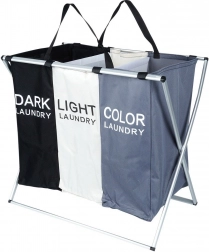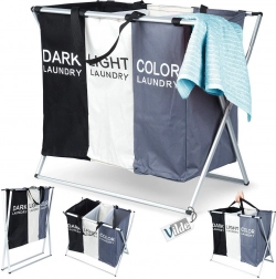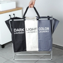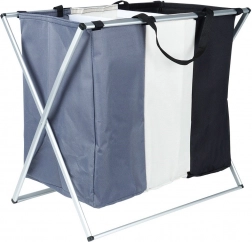 Utrzymuj porządek w praniu dzięki przejrzystemu trzykomorowemu koszowi, który umożliwia natychmiastowe sortowanie na ciemne, jasne i kolorowe. Lekka, lecz stabilna metalowa rama w srebrnym kolorze oraz solidne tekstylne worki zapewniają długą żywotność i wygodne użytkowanie na co dzień.